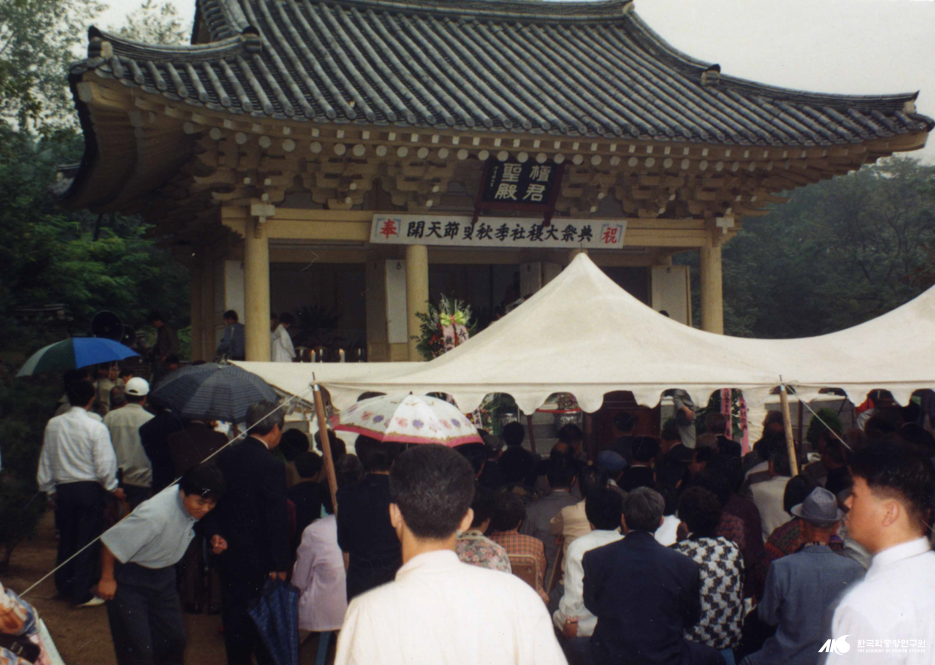 또한 우리나라의 민족은 10월을 한 해 농사를 추수하고 햇곡식으로 제상을 차려 감사한 마음으로 제천행사를 시행하는 달로 귀하게 여겼고, 3일의 숫자 3을 길수로 여겨왔다고 하여 개천절의 본래 뜻을 보다 더 분명히 한다고 볼 수 있다. 개천절이라고 이름 지은 것은 대종교에서 비롯했다. 1909년 1월 15일 서울에서 나철을 중심으로 대종교가 다시 부흥하게 되자, 개천절을 경축일로 정하고 매년 행사를 시행해 오게 되었다. 일제강점기에는 개천절 행사를 민족의식을 고취하는데 기여했고, 상해임시 정부 시절에는 개천절을 국경일로 정해 경하식을 시행했다. 또한 충칭 등 지역에서 대종교와 합동으로 축하 행사를 시행하기도 했다. 광복 이후 대한민국에서 이를 계승하여 개천절을 국경일로 공식 제정하고, 경축식전에서 부르던 대종교의 ‘개천절 노래’를 현행 노래로 바꾸게 되었다. 원래 개천절은 음력 10월 3일이기 때문에 대한민국 정부 수립 이후에도 음력으로 지켜왔으나, 1949년 문교부의 ’ 개천절 음, 양력 환용 심의회‘의 회의 결과 음, 양력 환산이 불가능하다는 이유로 ’ 10월 3일‘이라는 기록이 소중하다고 판단해 1949년 10월 1일에 공포된 ’ 국경일에 관한 법률‘에 의거하여 음력 10월 3일을 양력 10월 3일로 바꾸어서 거행하게 되었다. 그래서 대종교에서 시행하던 경하식은 국가적 행사에 맞춰 양력 10월 3일에 시행하게 되었고, 제천의식의 경우 전통적 선례에 따라 음력 10월 3일 상오 6시에 행하게 되었다. 개천절은 정부를 비롯해 일반 관공서 및 공공단체에서 시행하는 경하식과 다르게, 실제 여러 단군 숭모단체들이 주가 되어 마니산의 제천단, 태백산의 단군전 등에서 제천의식을 시행하고 있다.