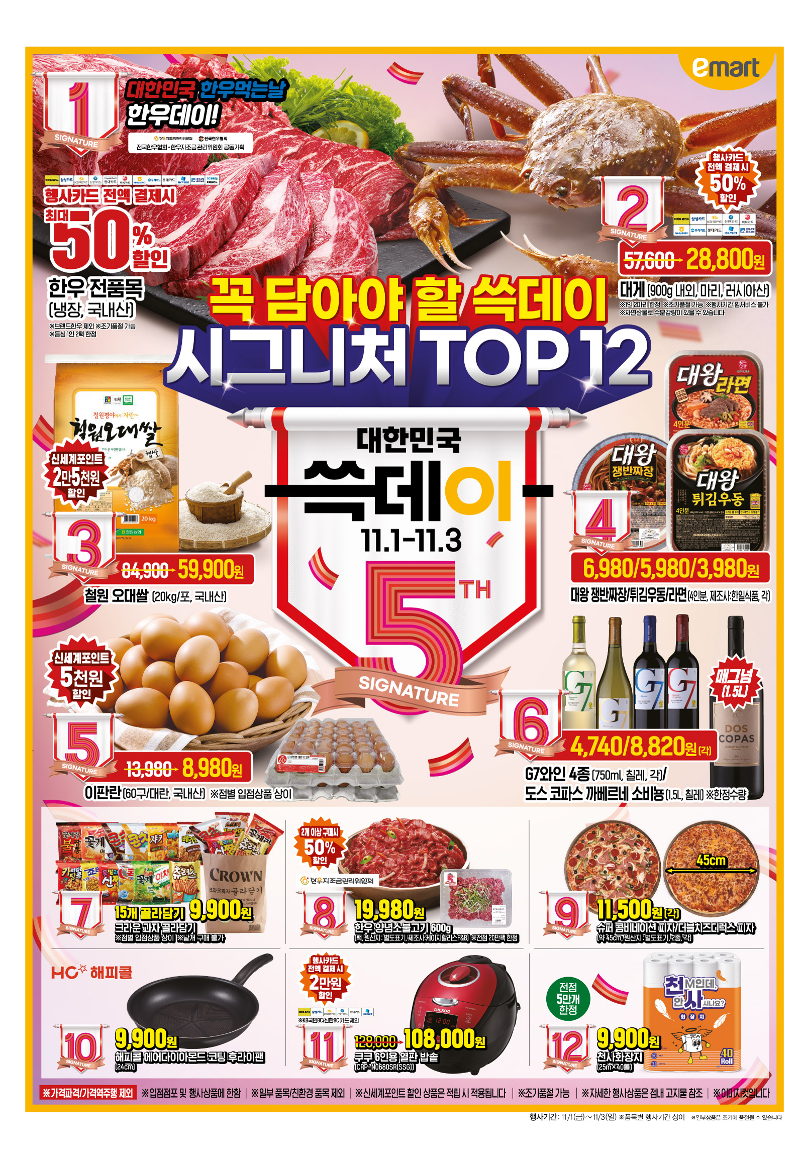 이번 글을 통해 11월 1일부터 3일까지 진행하는 3일간의 이마트 대박 세일을 놓치지 마시길 바랍니다.