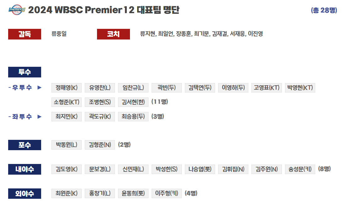 2024 프리미어 12 한국 대표팀 명단